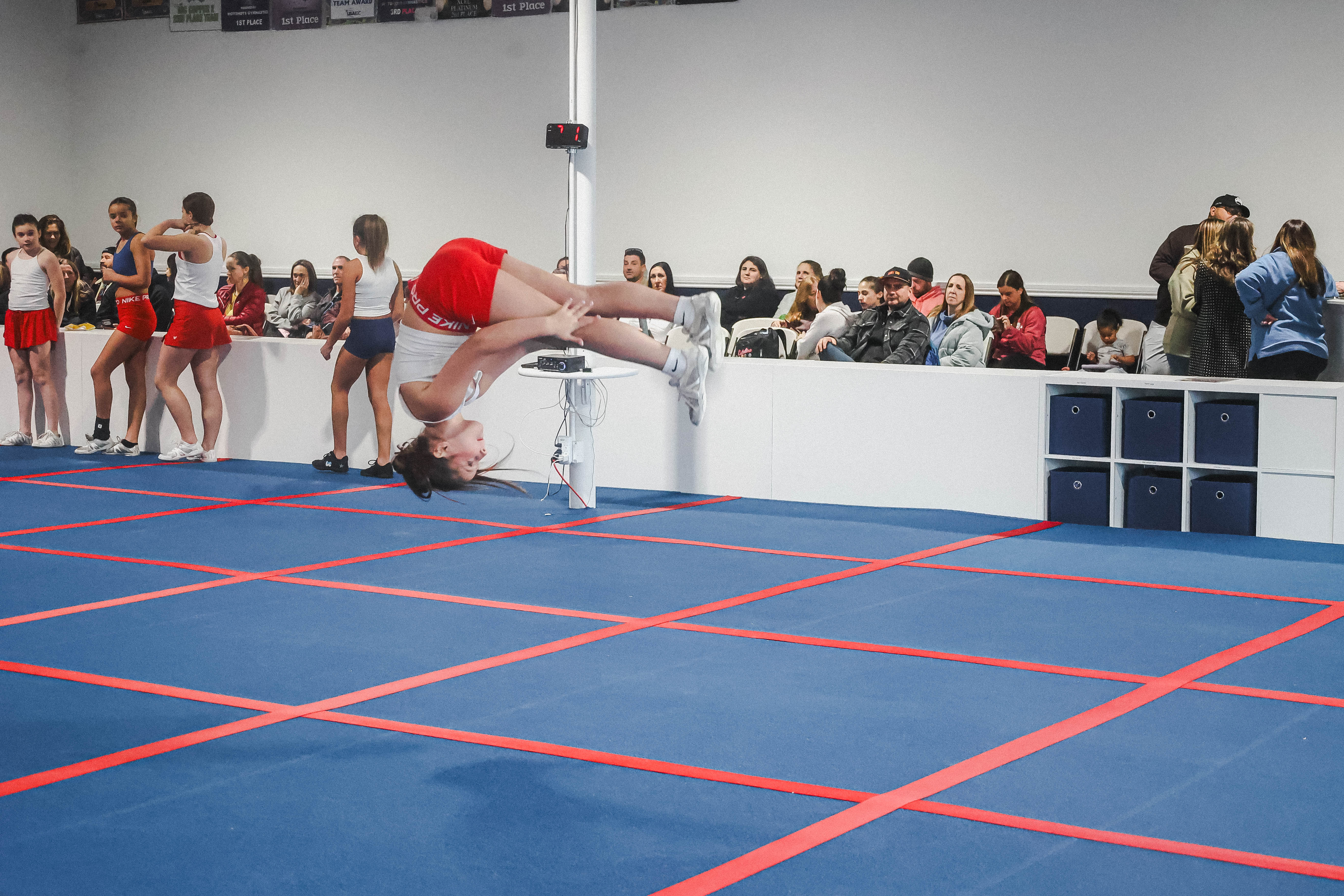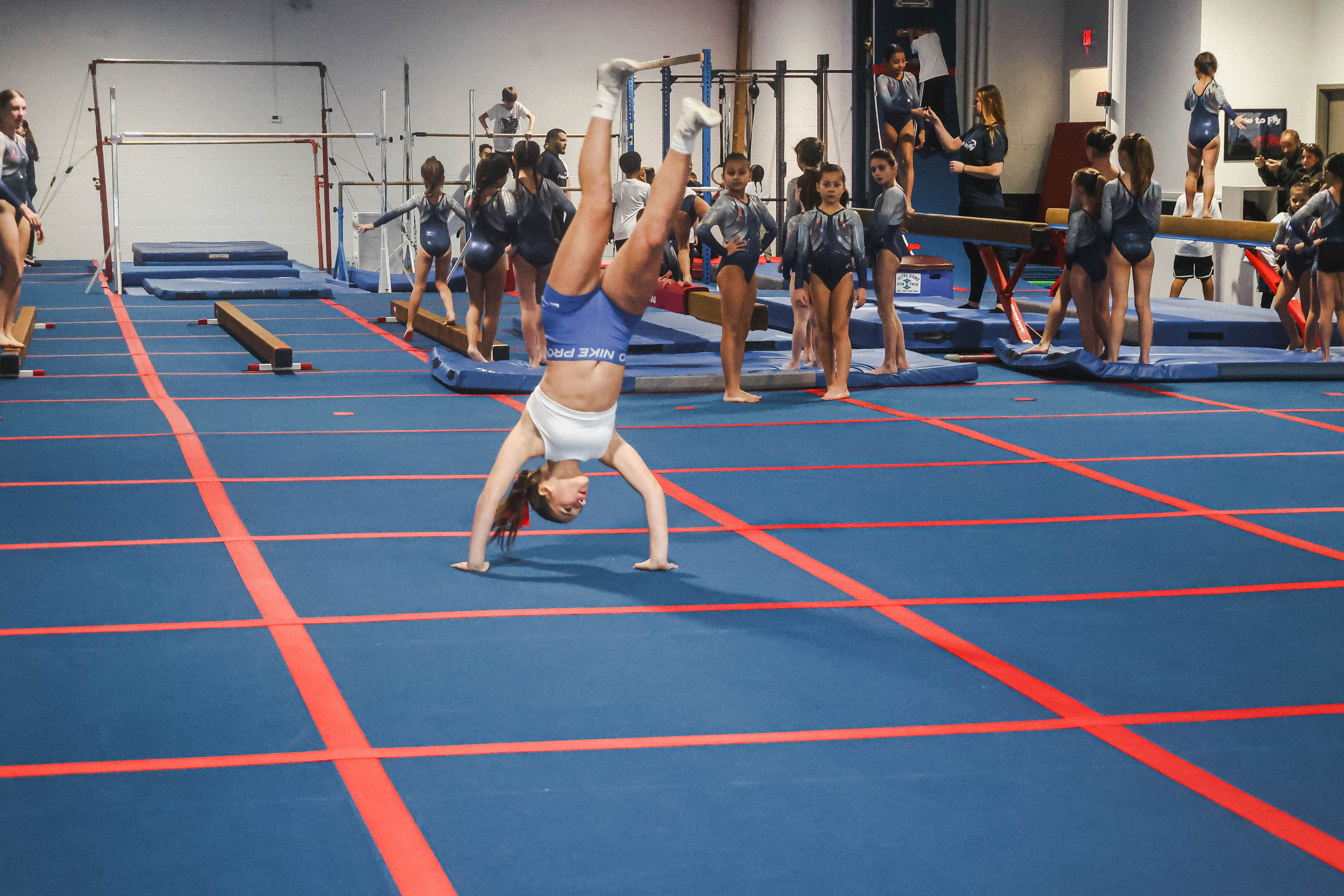 Tumbling students learn a variety of skills, including somersaults, flips, handstands, back handsprings and more.